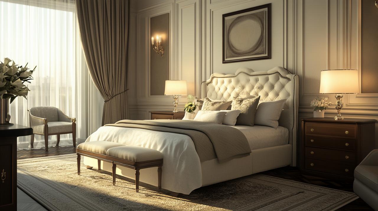 La palette chromatique de votre lit en tissu constitue le point de départ de l'harmonie visuelle de la chambre. Une approche monochrome, jouant sur différentes nuances d'une même couleur, crée une ambiance sophistiquée et reposante. Cette technique fonctionne particulièrement bien avec des teintes neutres comme le beige, le gris ou le blanc cassé, qui apportent luminosité et sensation d'espace. La parure de lit blanche demeure un choix intemporel qui évoque la propreté et le bien-être, tout en offrant l'avantage de s'adapter à tous les styles de décoration.